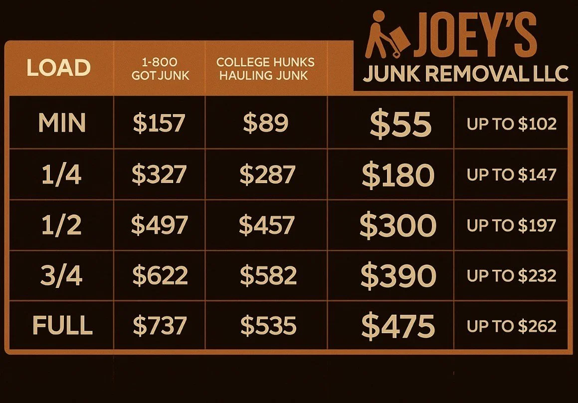 Pound for pound we are SoCal’s CHEAPEST professional junk removal and recycling company. We offer the same service as your big name national companies at more affordable rates which puts the money back into your pockets. We offer the large trailers and the cheapest rates.